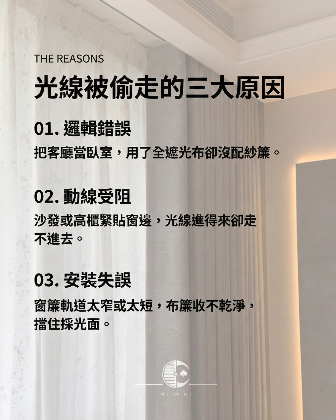 | 客廳過度遮光、臥室反而沒處理 | 光線分配完全反向 |