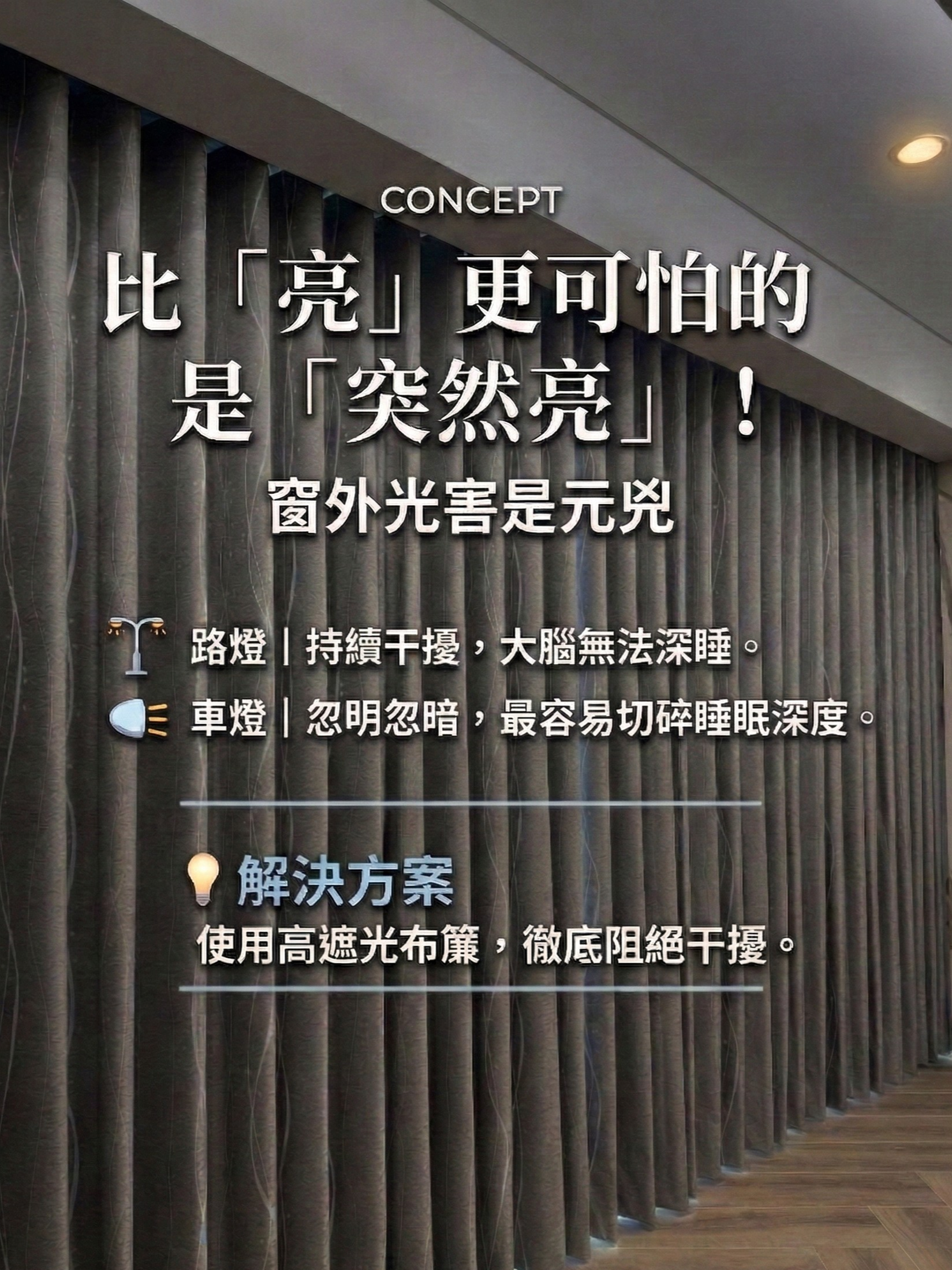 很多人會說:「我有做遮光窗簾啊。」