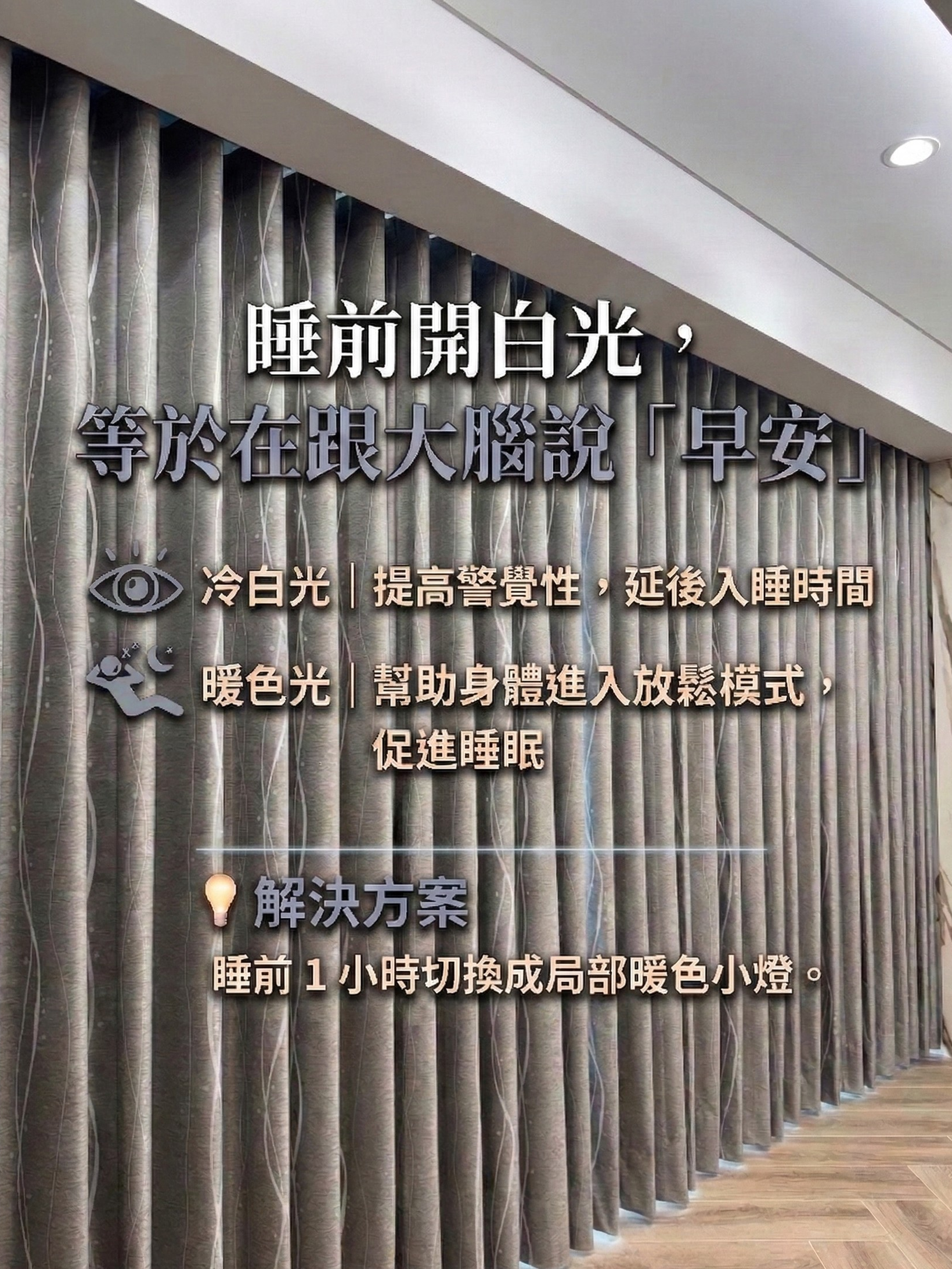 * 睡前改用暖色小燈